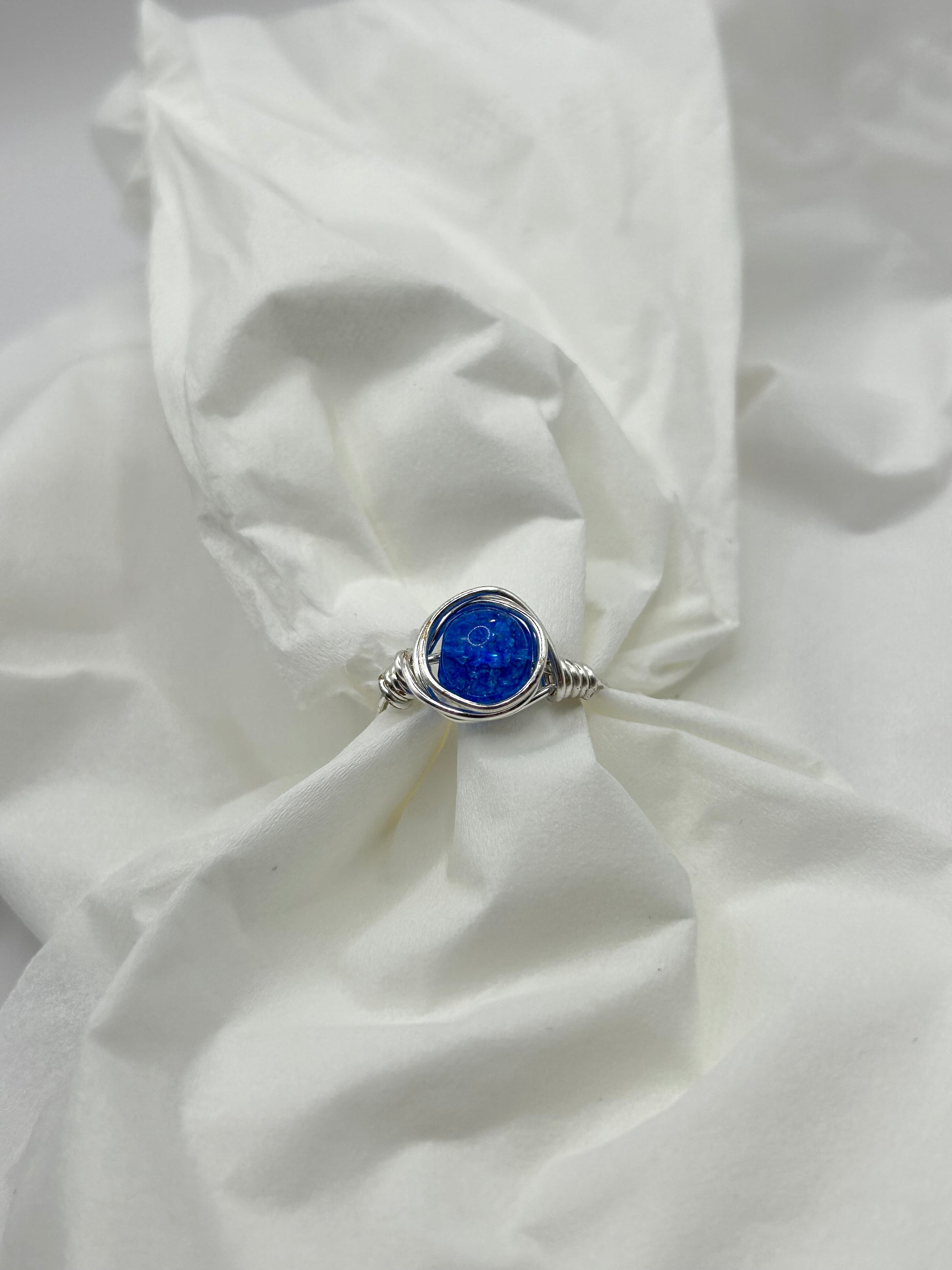 Handmade! Wire wrapped blue crackle quartz bead in silver plated copper wire! Made to a size L
