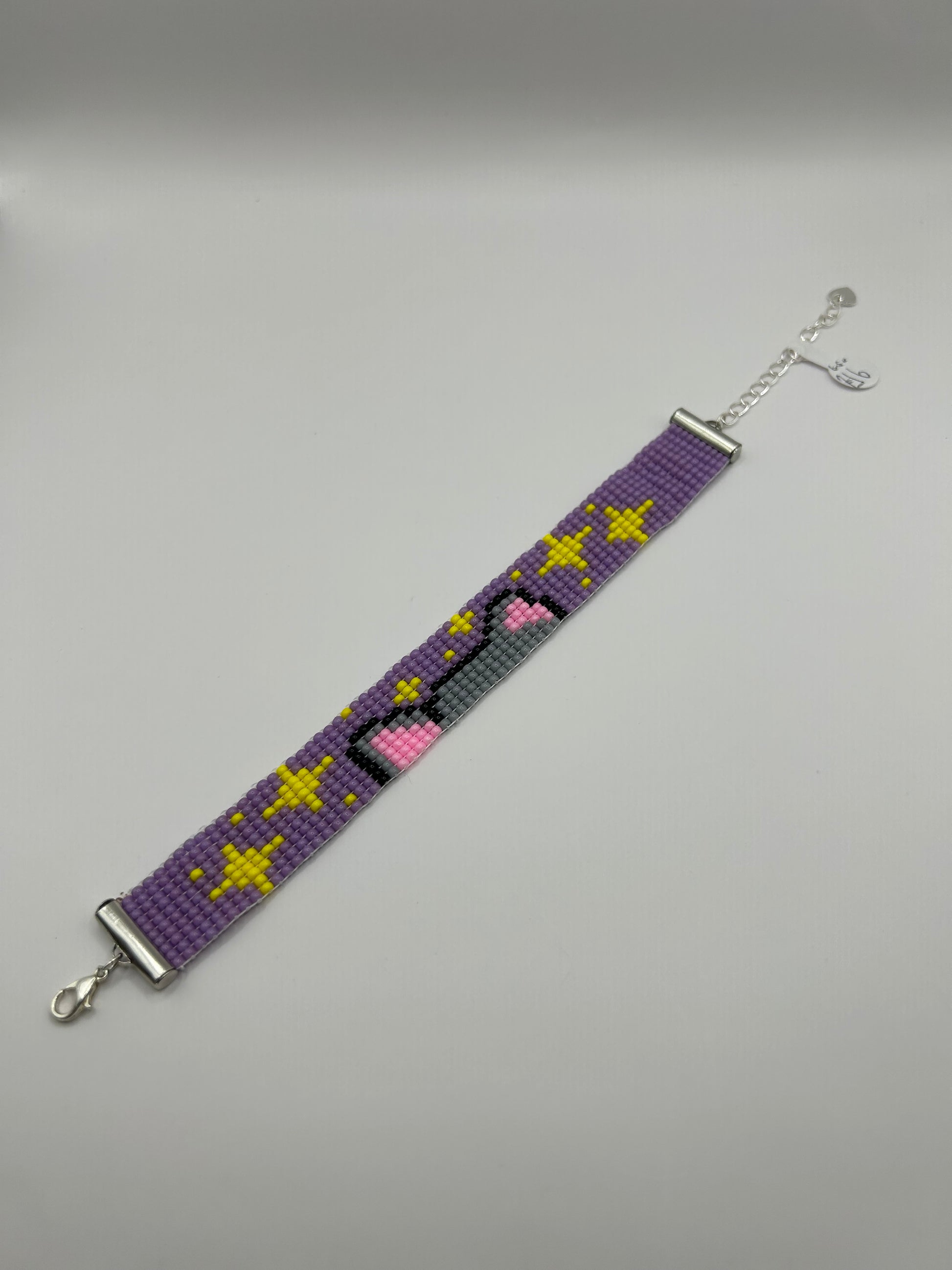 Handmade cat ear design bead loom bracelet, 6.5 inches with 2 inches of silver plated extension chain