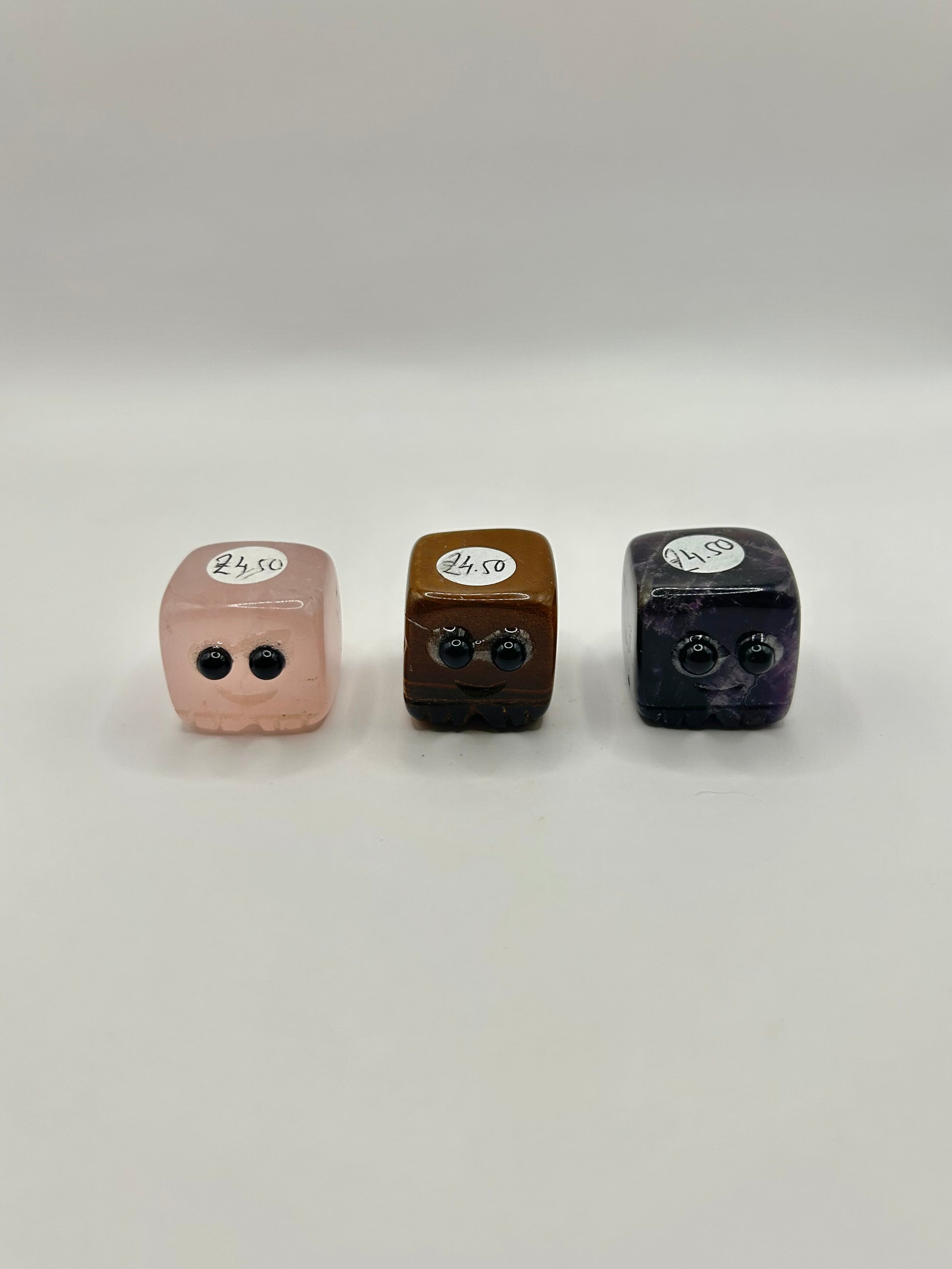 3 different materials of these adorable cube crystal buddies! Price is for 1 buddy