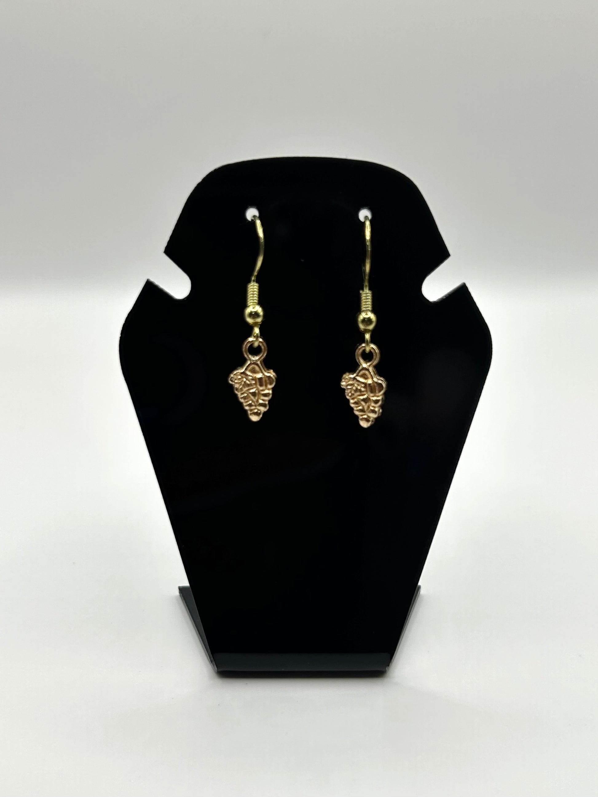 Cute little gold grape charms on 925 stamped gold plated hooks, also available in a clip on option