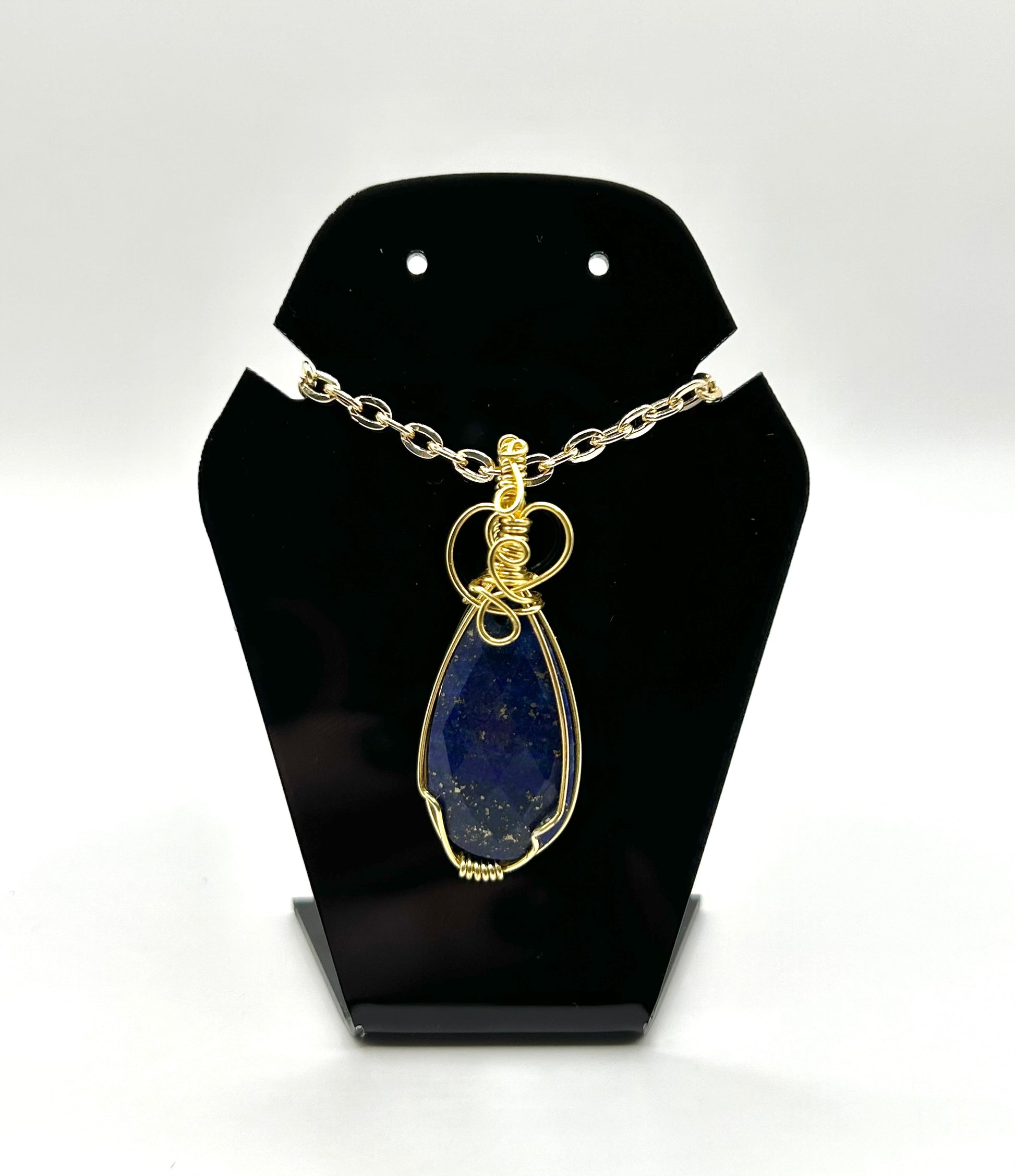 Expertly handcrafted, this lapis lazuli pendant is a true work of art. Made with gold plated copper wire, it exudes elegance and sophistication. Adorn yourself with this stunning accessory and embrace the healing and protective qualities of lapis lazuli. Available on a cord or chain