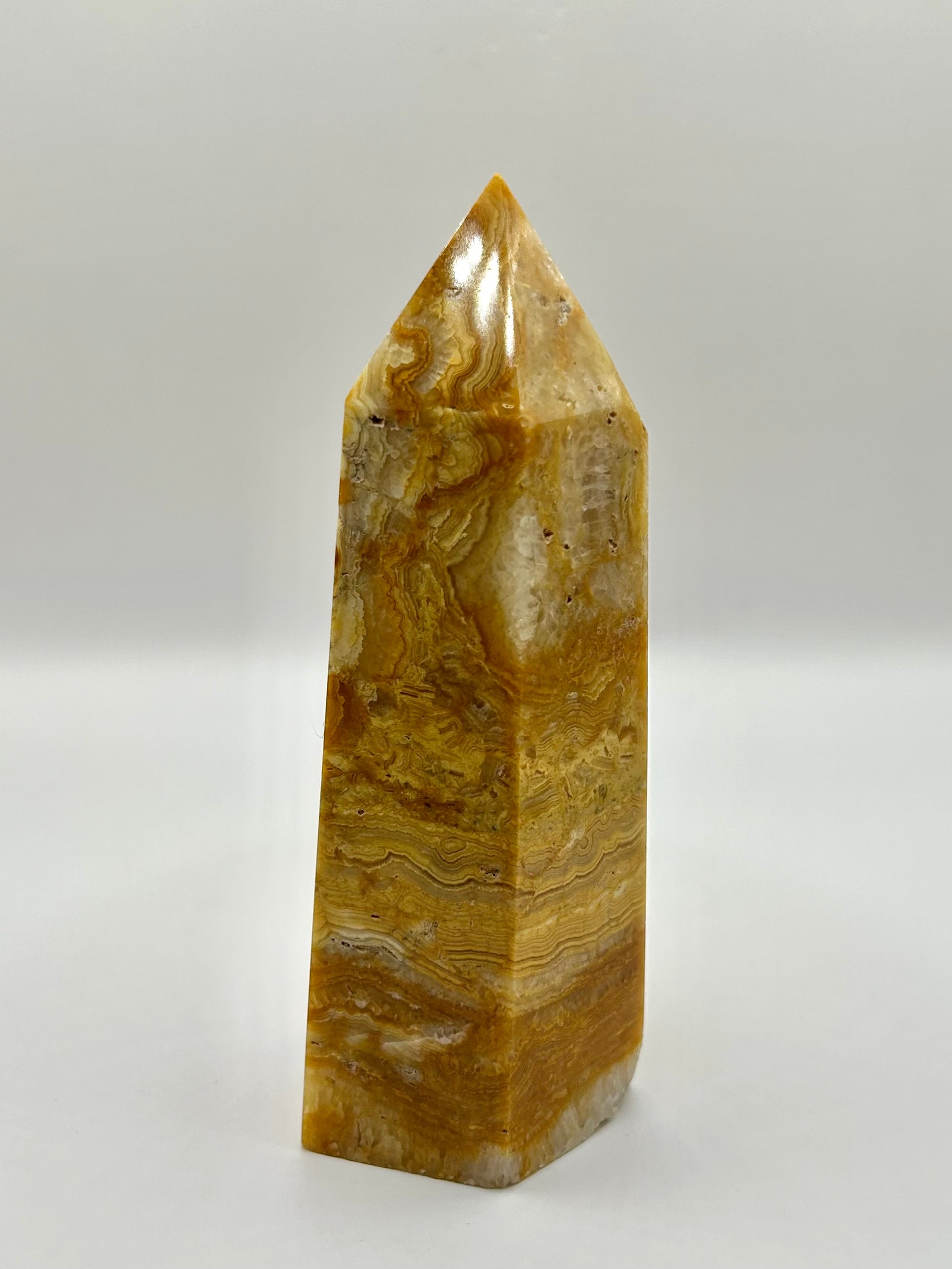 Stunning crazy lace agate tower with insane banding and patterns! 4.28 inches tall and weighs 261g