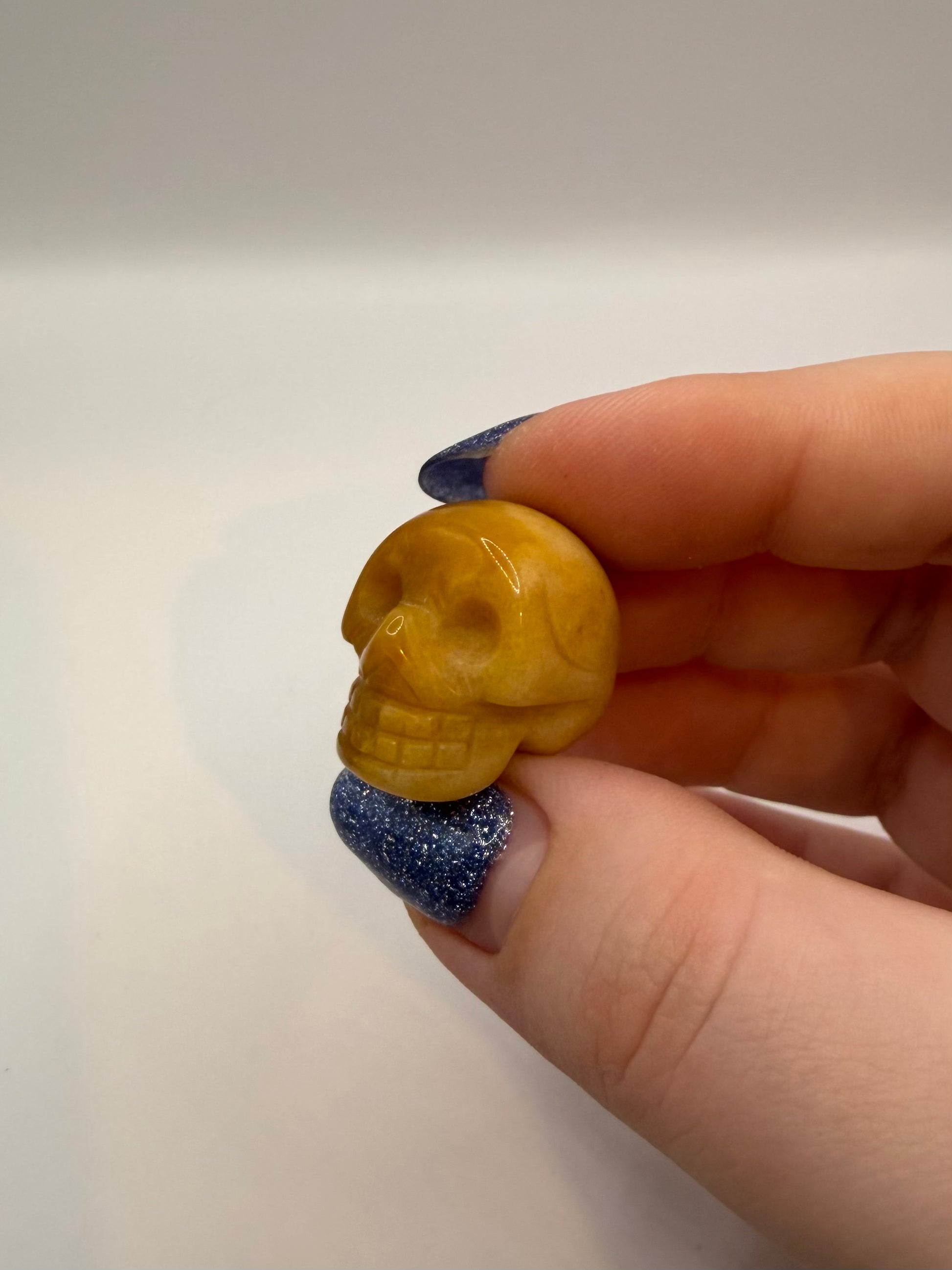 Stunning two toned yellow Mookaite skull carving