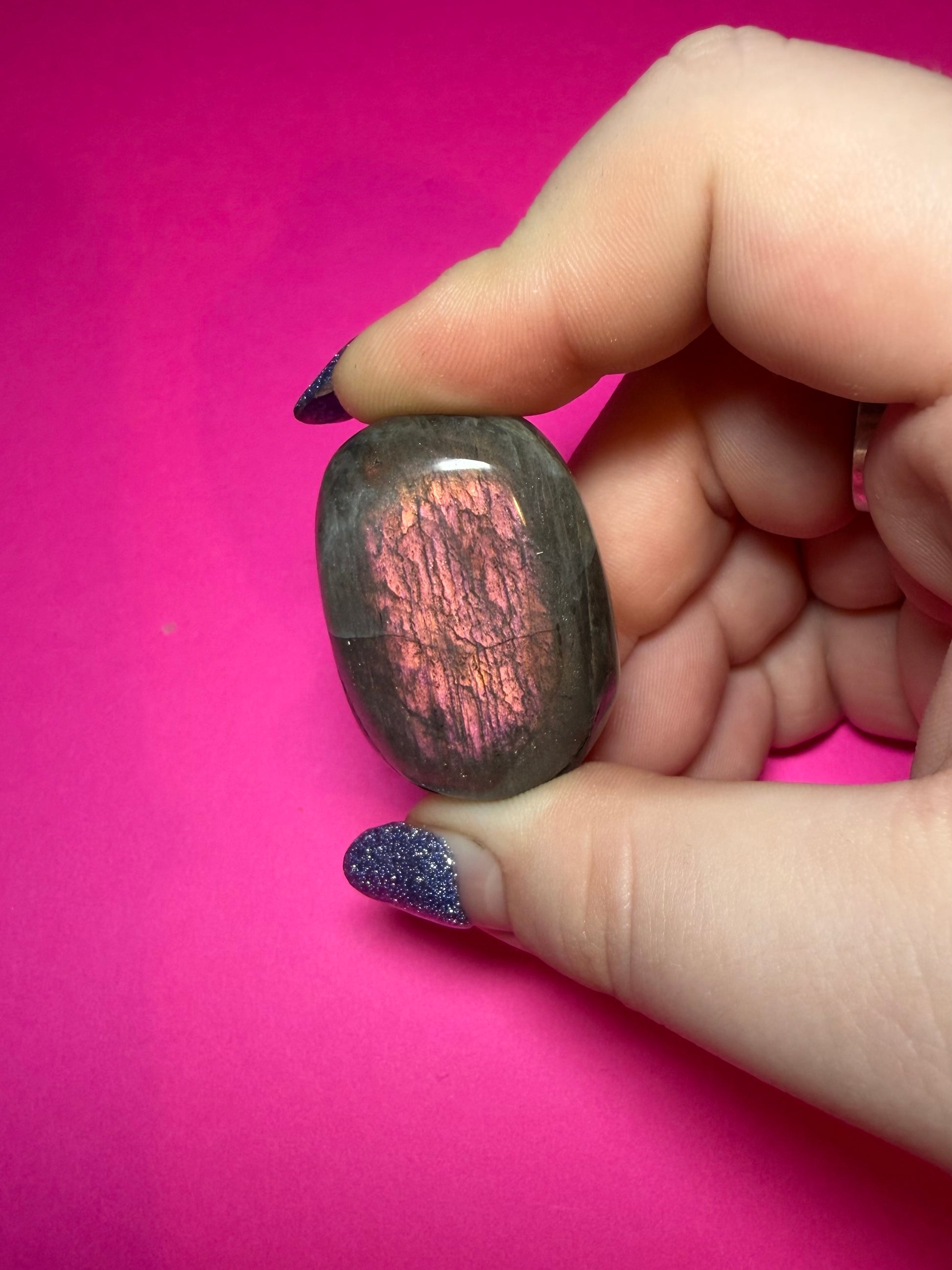 Pink small labradorite palmstone
