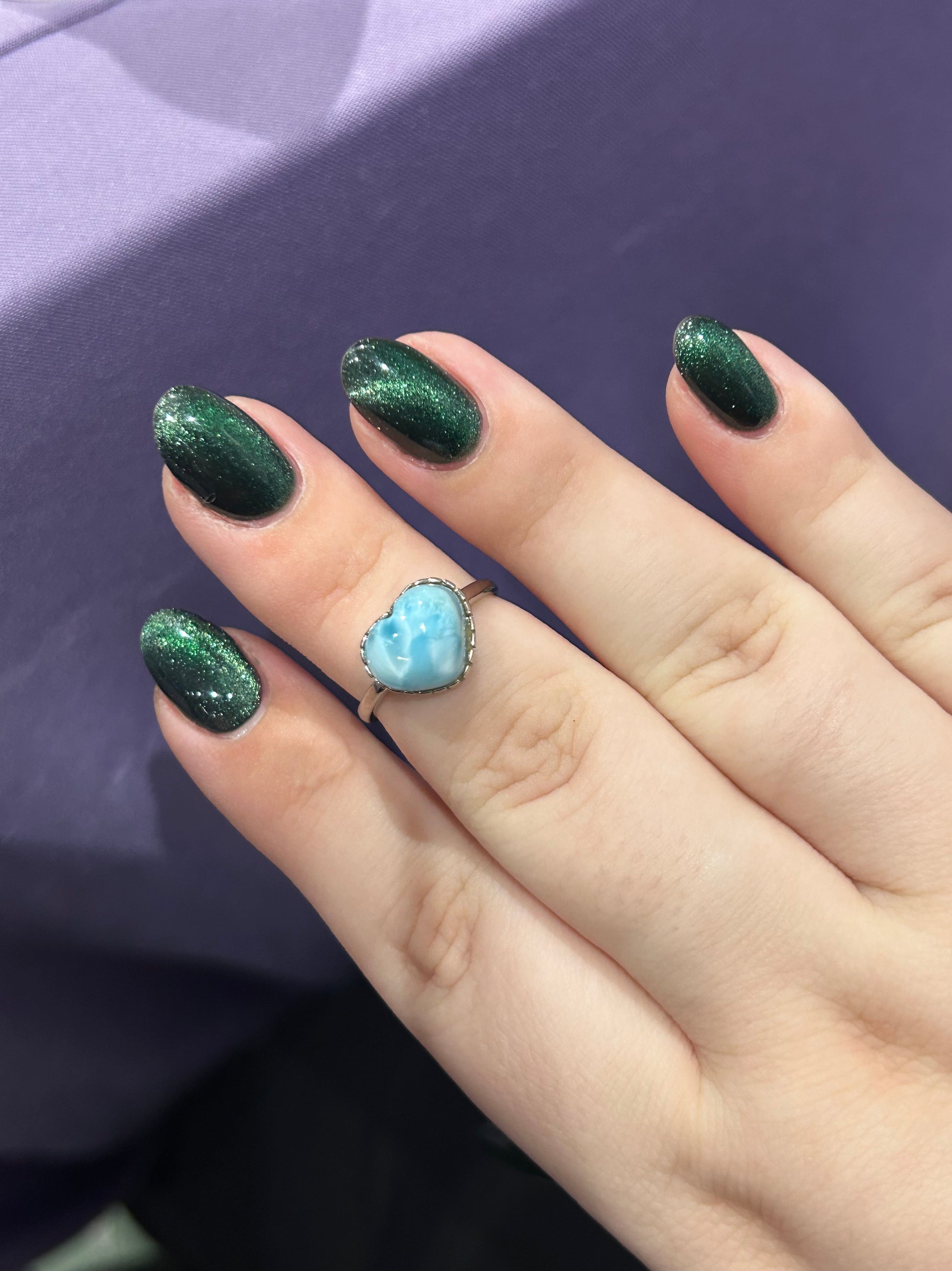 Beautiful quality Larimar heart set in 925 sterling silver ring setting which is also adjustable