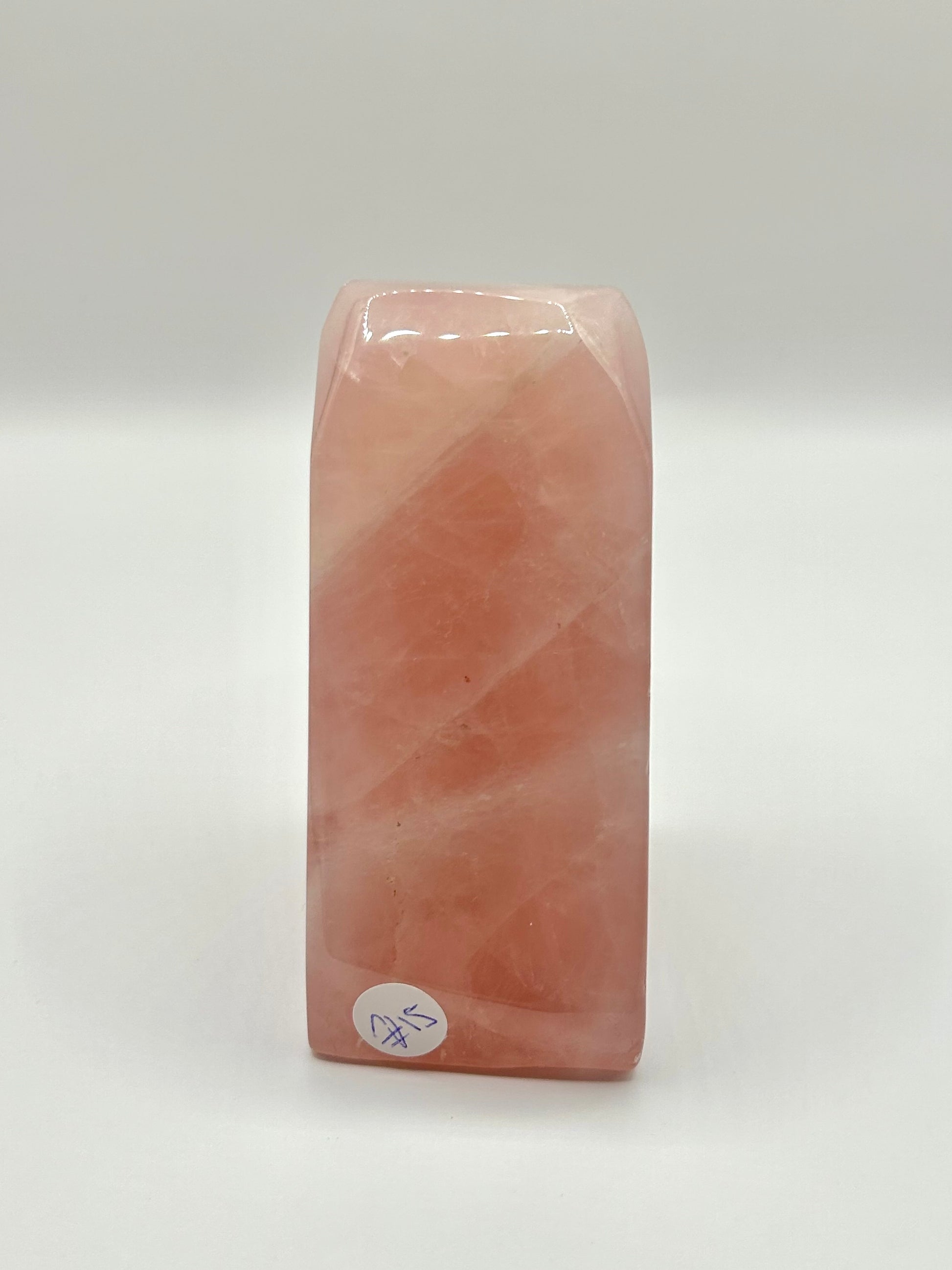 Nice deep pink on this rose quartz Freeform, has nice shimmery rainbows on one side, has a chip out of the underside, only small